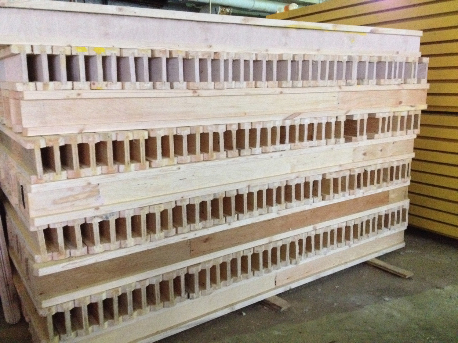 Двутавровая балка предназначена для использования при возведении в монолитном строительстве. Представляет собой двутавр, где полки изготавливаются из массива хвойных пород древесины, а внутренняя часть (стойка) изготавливается из влагостойкой берёзовой фанеры. Данная балка проходит обработку водоотталкивающими красками, что позволяет работать в неблагоприятных погодных условиях. Удельная прочность балки перекрытия очень высока, что позволит использовать её в пролётах очень большой длины.